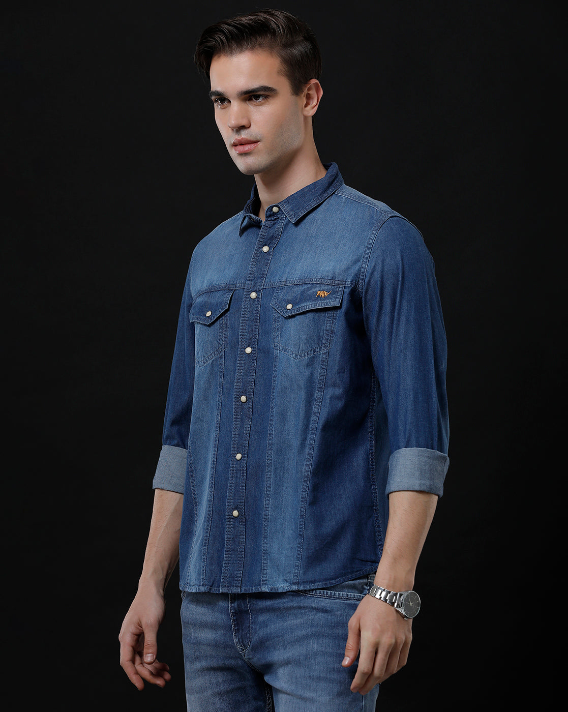Men's Slim Fit Solid Denim Casual Shirt (ACHAN)